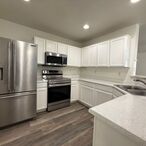 The open floor plan is enhanced by vaulted ceilings and upgraded tile flooring throughout, delivering a clean, modern aesthetic. Energy efficiency is a priority, with an upgraded energy-efficient window package, along with new exterior paint, a newer roof, AC, and water heater. Additional features include a water softener and upgraded ceiling fans and lighting fixtures throughout. The chef’s kitchen is beautifully appointed with custom cabinetry, upgraded countertops, a designer backsplash, and pantry. Both bathrooms have been tastefully remodeled, with the primary suite featuring a separate garden tub and walk-in shower for a spa-like retreat.