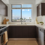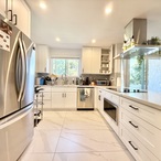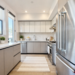 Italian kitchen w/ stainless steel appliances (dishwasher, oven, microwave, and refrigerator).