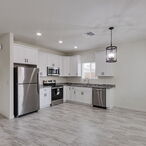 The living area invites relaxation, featuring warm tones and new flooring that set the stage for comfort. The kitchen blends modern updates with everyday practicality perfect for preparing a quiet meal or hosting a casual night in.