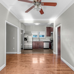 This remastered complex still holds onto some of that vintage charm we all love. As soon as you step foot through the privacy gate, this little wonderland is waiting for you. Instantly, you’ll notice the flooring that bounces natural light all around the home. The living room features recessed lighting, a ceiling fan, and a ductless AC unit. Pass through the curved archway and you’re in your snazzy dining room. Don’t need a dining room? Use this as an office, second seating area, or reading room. With a large closet and built-in cabinet, there are so many possibilities.