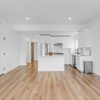 Set behind a fully fenced and landscaped front yard, the home welcomes you with privacy, greenery, and charming curb appeal. Inside, a bright and expansive main living area showcases vaulted ceilings with exposed wood beams, warm honey hardwood floors, and oversized windows that pour in natural light. The open layout creates an easy flow between living and dining spaces, giving you plenty of room to lounge, host, or create a work from home setup that actually feels good to be in.