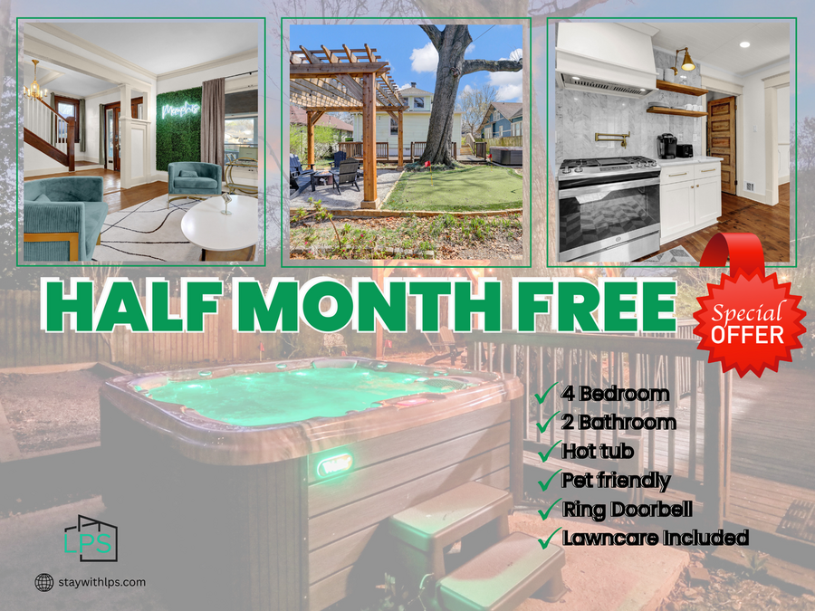 HALF MONTH FREE! Spacious 4BR/2BA Midtown Home | Over 2,100 sq ft + Hot Tub + Lawncare Included!