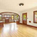 PROPERTY INFO: This yellow Craftsman bungalow sits on a quiet, tree-lined corner in Mt. Scott–Arleta, surrounded by mature landscaping. Inside, oak floors, fir trim, and original 1920s details remain intact, paired with modern updates for everyday comfort. The light-filled living room features a wood-burning fireplace and flows into a formal dining room.