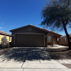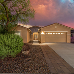 4BD 2BA, 2,135 SQ FT home in Oro Valley's community of Verde Ranch. Inviting, open floor plan with high ceilings, great room concept off kitchen & formal dining room (opt den). Kitchen offers extended height cabinets with molding, easy care Corian counters, accent tile backsplash, SS appliances, plus bkfst bar seating at island. Window framed Catalina views from the kitchen + great room, too! Lovely master suite, with custom built-ins in walk-in closet, executive height dual vanities, plus a separate garden tub and walk-in shower. Fully landscaped backyard with covered patio + beautiful mountain views.