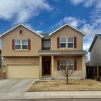 Take a look at this beautiful home in new Mountain Vista off of Marksheffel. This home has all the extras! A covered front porch greets you and leads you into a large, formal entry. Beautiful luxury vinyl plank flooring throughout the main level. Spacious, gourmet kitchen with quartz countertops, a gas range, composite under mount sink, beautiful tile backsplash and recessed lighting finish it out. Walk-out to immaculately kept large backyard fully fenced for privacy. The large living room has a beautiful stone to ceiling fireplace. Upstairs includes an amazing loft area for kids playroom, media room, or office area. The primary bedroom has double doors, a large walk-in closet and a private bath with quartz countertops, soaking tub and spa shower with seat. 3 car garage. Mountain Vista is home to a 4 acre park and walking trails and is close to shopping, dining, schools, parks and entertainment! Easy drive to Peterson AFB, Schriever or Fort Carson!!