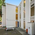 This apartment unit is located on the West side of the building (the QUIET SIDE) -- away from the traffic noise on Aurora Ave. This small (just 9 residential units), well-designed property was built in 2001 as condominiums and is located just minutes from downtown Seattle near the heart of the Fremont business district. This roomy unit starts on the 2nd floor level of the building (above a quiet commercial businesses on the ground floor level). The apartment itself is three stories tall (with a roomy bedroom and full bath on BOTH the second and third floors), and features partial views of the Olympic Mountains to the West. The main floor is a well-designed open kitchen with modern stainless-steel appliances (refrigerator, stove, dishwasher, and microwave), a convenient breakfast bar, and a nice-sized dining/living room. Just off the living room (on the west side of the building) is an adjoining deck. The second-floor bedroom also has an adjoining West-facing deck. The "primary" bedroom is on the top floor. Both bedrooms have lots of closet space. The convenient in-unit washer and dryer is on the second floor.