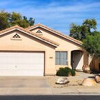 Beautiful 4-bedroom, 2-bath single-story home located in the highly desirable Glennwilde subdivision. The eat-in kitchen features rich cherry cabinets, quartz countertops, a breakfast bar, and plenty of storage—perfect for casual dining or hosting guests. The home includes a convenient Jack and Jill bathroom between two secondary bedrooms, while the private primary suite offers a generously sized bedroom, large walk-in closet, and a full bathroom. Step outside to a serene backyard that backs to a natural wash for added privacy. The outdoor space includes a covered patio with pavers and a grassy area, ideal for relaxing, playing. Located in Glennwilde Groves, with 2 community pools, walking & biking paths!