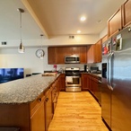Custom Honey Oak Kitchen Cabinets, Granite Countertops, Stainless Steel Appliances, Glass Sliding doors to Balcony, Private Balcony - Small Gas Grill OK.
