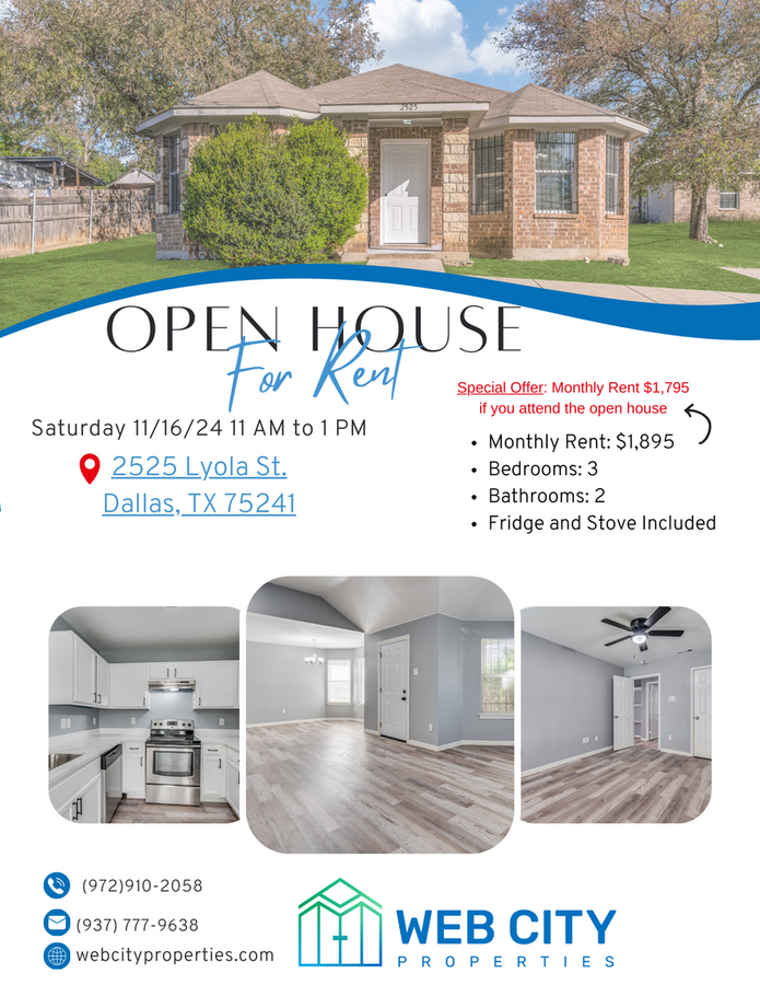 3 Bed 2 Bath House for RENT in Dallas TX!