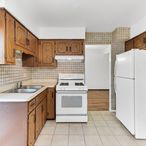 The kitchen features granite countertops, hardwood cabinets, and a full appliance package (stove, oven, fridge) — everything you need. Services like snow removal, trash, and lawn care are all included, along with water, so your monthly costs stay