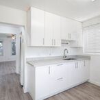 Inside this first floor studio, you’ll find hard surface flooring throughout and an upgraded kitchen with new white shaker cabinets, new quartz countertops, a gas stove, and 1 assigned parking space. The bathroom features a convenient linen closet for added storage. Residents also have access to onsite coin laundry within the community.