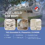 Come see this 2 bedroom, 2.5 bathroom, 1,502 sq. ft. townhome in this walk-friendly neighborhood, nestled across from Stoneridge Mall. This beautiful corner unit offers a comfortable living space, in a well-maintained community, conveniently located in Pleasanton. The living room has high ceilings, laminate wood floors, built-in shelving and a cozy wood-burning fireplace. The kitchen has stainless steel appliances, including a Viking gas range with a large range hood, freshly painted cabinets/drawers, and a bar top overlooking the dining room. Upstairs, you'll find a versatile loft space perfect for a home office, study area, or reading nook, a full hallway bathroom with a tub/shower combo, and the laundry closet with built-in shelving. The master bedroom has a spacious walk-in closet, and ensuite bathroom with dual sinks and tub/shower combo. The home comes complete with a gated front patio space, and attached side-by-side two-car garage. The community offers beautiful surroundings, a community pool and is located near Kaiser Permanente, Stoneridge Shopping Center, BART, and provides easy access to I-580 and 680 freeway. The home is also located of the highly rated Pleasanton schools district.
