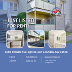 Come see this nice 2 bedroom, 1 bathroom, 725 sq. ft. apartment located close to Bayfair Mall. This top floor unit offers a spacious fully carpeted living room with direct access to a private balcony. Next to the living room is the kitchen that offers new quartz countertops and cabinets. The bathroom has laminate wood floors and a tub/shower combo. The apartment includes 2 assigned parking spaces. There is shared laundry conveniently located on-site.