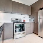 • Modern kitchen with stainless steel fridge, stove & dishwasher