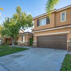 Stunning five-bedroom, three-and-a-half-bath home with solar and a downstairs bedroom and attached bathroom, located in the desirable gated West Hills community. With an open and inviting floor plan, this home is designed for both comfort and style. The spacious kitchen boasts a large center island with stylish pendant lighting, white cabinets with brushed silver hardware, and stainless-steel appliances, including a gas stove, double oven, counter microwave, dishwasher, and refrigerator. It flows seamlessly into the cozy living room, which features tile flooring that mimics wood, a beautiful crystal light fixture, and a fireplace. Off the living room is the dining area, adorned with a beautiful chandelier and a French door that opens onto a beautifully landscaped private backyard with a side area of artificial turf, an attached umbrella, a built-in outdoor kitchen with BBQ and mini fridge, and gorgeous mountain views perfect for relaxing or entertaining. There is a guest bedroom with an attached bathroom downstairs, featuring a walk-in shower, along with a convenient half bathroom with a pedestal sink. Upstairs, the primary suite is a private retreat featuring lush carpeting, a crystal light fixture, a generous walk-in closet with built-in shelving, and a separate sitting area with laminate flooring, all of which are accompanied by a private balcony with mountain views. The en-suite primary bathroom includes dual sinks, a walk-in shower, and a separate soaking tub. Three additional upstairs bedrooms and a full guest bathroom with dual sinks. Additional features include an upstairs laundry room with washer and dryer hookups, an oversized linen closet, a two-car attached garage, and solar panels for energy efficiency and potential reduced energy costs. Enjoy the multiple HOA pools, spas, parks, and playgrounds. Walking distance to West Creek elementary school, Rio Norte, and Valencia High School. *Owner may consider a pet.