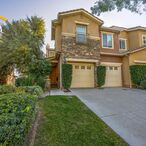 Stunning three-bedroom townhouse located in the desirable gated Bella Ventana community, offering beautiful golf course and mountain views. The entry opens into a bright and spacious living room featuring wood-look tile flooring, a cozy fireplace, a ceiling fan, and recessed lighting. The adjacent dining area flows seamlessly into the updated kitchen, which showcases quartz countertops, white cabinetry with elegant gold hardware, recessed lighting, and stainless steel appliances, including a gas stove, single oven, microwave, dishwasher, and refrigerator. A convenient half bath is located downstairs. Upstairs, you'll find a versatile loft with a built-in study desk and access to a private balcony overlooking the golf course. The spacious primary suite features plush carpet, a ceiling fan, a walk-in closet, and direct access to the balcony. The beautifully updated en-suite bathroom includes granite countertops, dual vanities, a separate soaking tub, and a walk-in shower. Two additional guest bedrooms also feature ceiling fans and mirrored closet doors. There is a full guest bathroom and an upstairs laundry room complete with a full-size washer and dryer. The private backyard is generously sized and designed for low maintenance, featuring turf and serene views of the mountains and golf course. Additional highlights include an attached two-car garage and access to all Westridge amenities, including a pool, a spa, a tennis court, and a basketball court. The townhouse is ideally located near shopping, dining, schools, and provides easy access to the 5 Freeway. *Owner may consider a small pet.