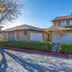 Stunning three-bedroom home in a quiet Northpark community with beautiful flooring and shutters throughout, plus SOLAR. The entrance opens to the living room, which features vaulted ceilings, a ceiling fan, a fireplace, and an entertainment niche. Off the living room is the dining area and a spacious kitchen with a center island, quartz countertops, white cabinets with brushed silver hardware, stainless steel appliances, recessed lighting, an abundance of storage space, and a walk-in pantry. Kitchen appliances include a gas stove, a double oven, a dishwasher, a microwave, and a refrigerator. Off the kitchen is a sliding glass door to a private patio with a pergola, artificial grass, ambient string lighting, and a wraparound patio with Spanish tile. There is also a half bathroom located downstairs with an updated vanity. The primary bedroom features recessed lighting, a ceiling fan, wall-mounted light fixtures, a sliding glass door to a balcony, and a beautifully updated attached bathroom with contemporary tile, dual sinks, an oversized walk-in shower, and a walk-in closet. Both guest bedrooms have ceiling fans; one has mirrored closet doors, and the other has an oversized closet armoire. A full guest bathroom is also available. Additionally, there is an attached two-car garage with washer and dryer hookups. This property features solar panels for energy efficiency and the potential for reduced energy costs. Enjoy the various amenities within the Northpark community, including pools, spas, basketball and tennis courts, parks, and playgrounds. Conveniently located close to shopping and restaurants. *Owner may consider small pets.