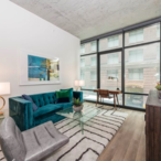Compact yet stylish, this studio apartment in Chicago s South Loop is a modern gem. Designed to maximize space and light, it features floor-to-ceiling windows and exposed concrete ceilings that add a touch of urban sophistication. The kitchen comes equipped with sleek European-style cabinetry, quartz countertops, and stainless steel appliances. The bathroom shines with Grohe fixtures, frameless mirrors, and ample vanity space.
