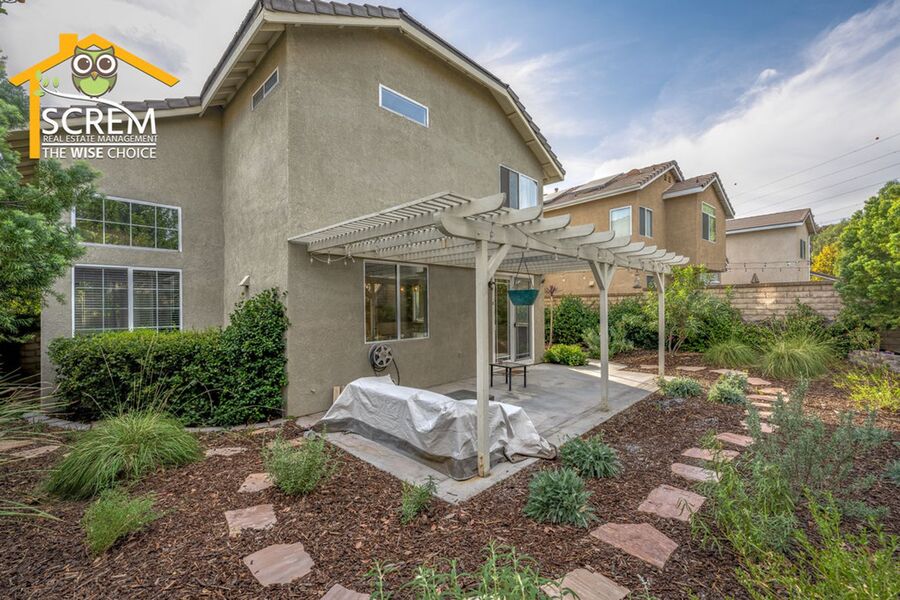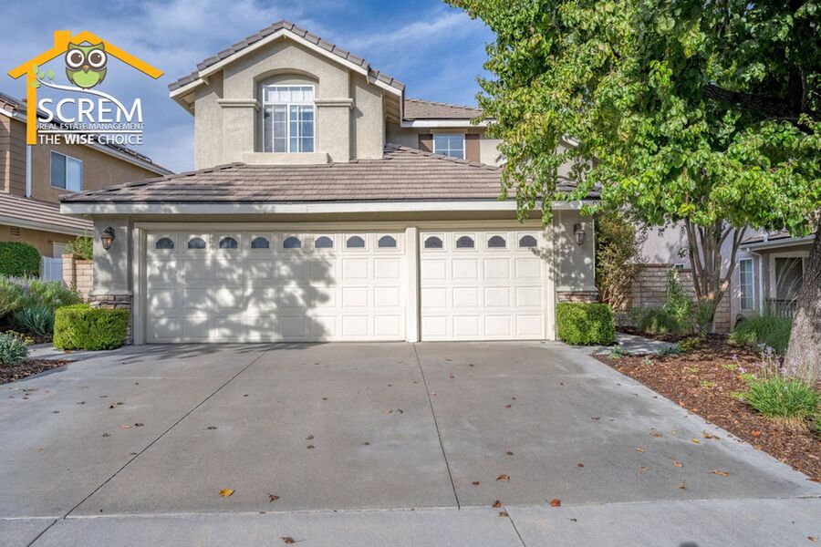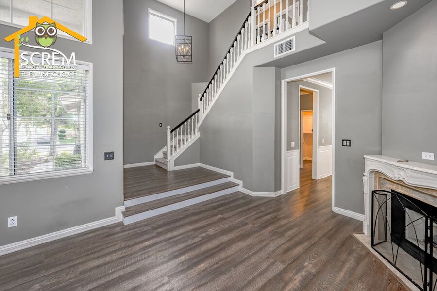 Stunning three-bedroom home with a three-car garage located in the desirable Northpark community. As you enter, you’ll be greeted by steps leading down to the light and bright living room, which features vaulted ceilings, beautiful flooring, and an inviting electric fireplace. The family room, complete with a built-in entertainment center, recessed lighting, and crown molding, opens to the dining area, where a sleek contemporary light fixture enhances the space, and a sliding glass door provides access to the private backyard with lush landscaping, perfect for outdoor relaxation. The updated kitchen boasts quartz countertops, white cabinetry with brushed bronze hardware, tile backsplash, a convenient breakfast bar, and stainless steel appliances, including a gas stove, single oven, new microwave, and dishwasher. A half bath is located downstairs, along with a laundry room that connects to a spacious three-car garage equipped with a 14-50 car charging outlet for your convenience. Upstairs, the primary bedroom offers vaulted ceilings, plush carpeting, and a beautifully updated attached bathroom with dual sinks. Two additional guest bedrooms have vaulted ceilings and share a full guest bathroom. Enjoy access to HOA amenities, including multiple pools, spas, and tennis courts. This home is also conveniently located near parks, schools, restaurants, and shopping. *Owner may consider pets.