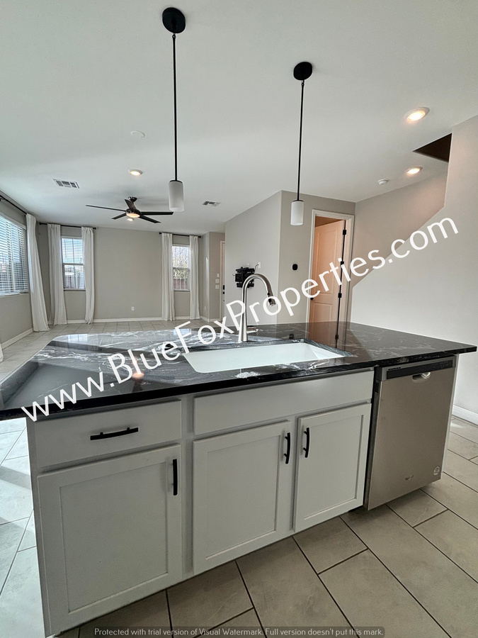 This beautiful 3-bedroom, 2.5-bath home offers a spacious and functional layout with a 2-car garage featuring built-in shelves for extra storage. The bright and open living room is filled with natural light from large windows and includes a sliding door that leads to the side yard. The stunning kitchen boasts a large island with a sink, stainless steel appliances, ample cabinet and counter space, and a pantry, perfect for everyday living and entertaining. A convenient half bathroom is located downstairs, along with tile flooring throughout the first floor. Upstairs, you’ll find generously sized bedrooms, a guest bathroom with a double-sink vanity and a shower/tub combination, a dedicated laundry room, an additional storage closet, and cozy carpeted flooring throughout the second level. Don’t miss this opportunity and schedule a showing today!