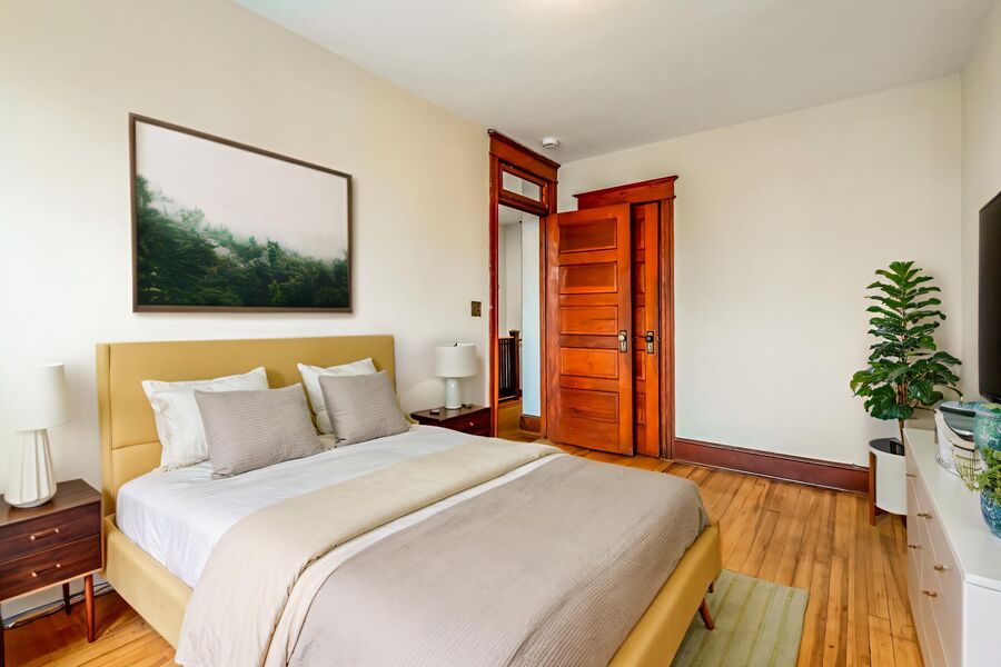 Get a spacious and character-filled home featuring original woodwork, hardwood floors, and a flexible layout ideal for a variety of living arrangements. The main level offers bright, open living and dining areas, while the lower level functions as an attached English basement complete with its own living space, kitchenette, full bath, and additional bedroom. Please note that while this level adds valuable living space and flexibility, it is not a fully separate unit and includes some shared areas within the home.