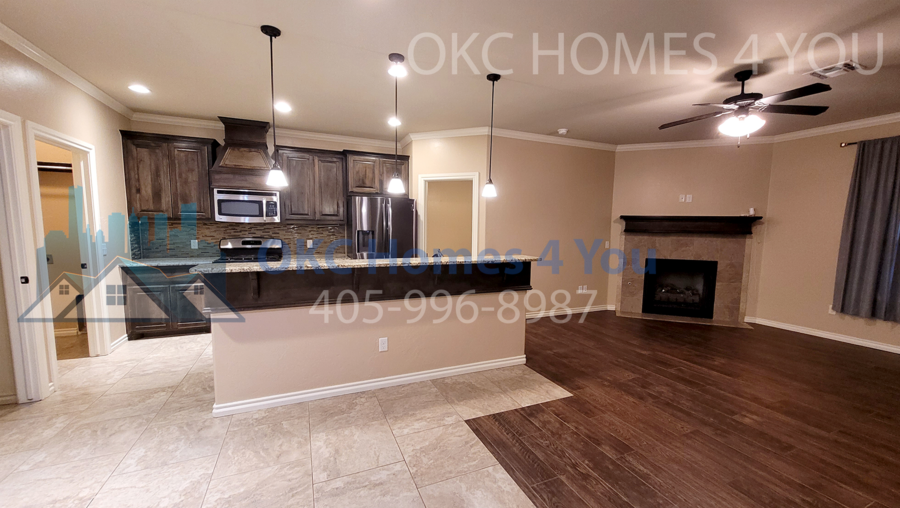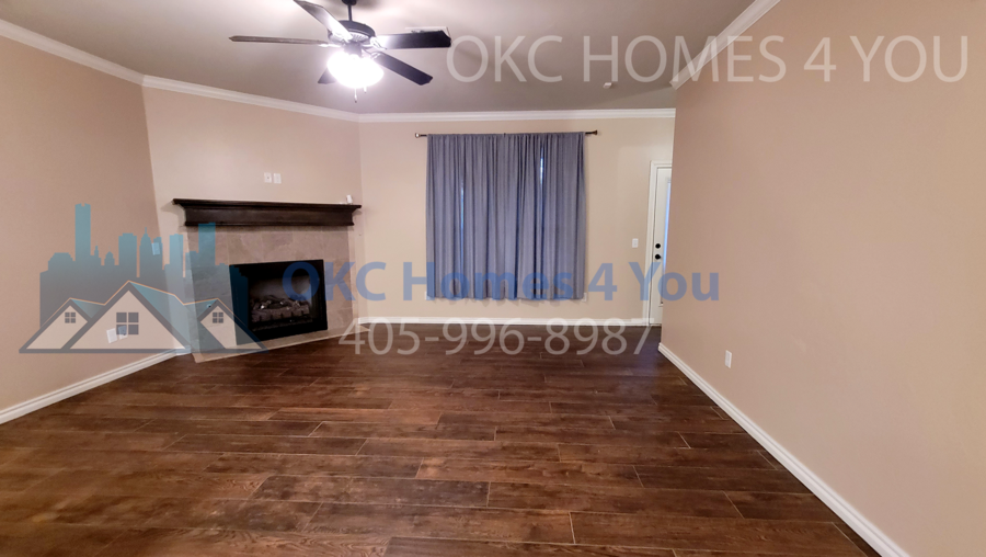 Welcome to this beautiful 3 bedroom home located in the highly sought-after Edmond School District in Edmond, OK. This home is situated in a gated community with a community playground for residents to enjoy. The house features a remodeled balcony, perfect for relaxing and taking in the views. Inside, you will find a spacious living area with a gas fireplace, perfect for cozy nights in. The kitchen is equipped with a refrigerator, gas range, built-in microwave, dishwasher, and garbage disposal. The solid surface flooring throughout adds a touch of elegance to the space. The 2 car attached garage includes a storm shelter for added safety. Step outside to the covered patio, ideal for outdoor entertaining. Additionally, this home boasts a game room, providing extra space for leisure activities. Don't miss out on the opportunity to make this stunning house your new home!