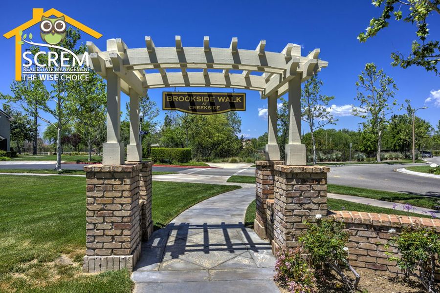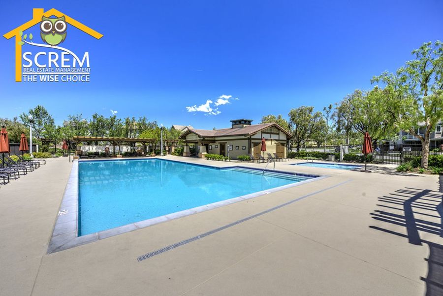 Wonderful Creekside home located in Valencia with three bedrooms. A beautifully landscaped walkway leads up to the entrance of the home. As you step inside, you'll find a tiled entryway that leads to a cozy living room with new luxury plank flooring, a ceiling fan, plantation shutters, and a gas fireplace. The dining area has a sliding glass door that opens to a lovely patio with stamped concrete, perfect for outdoor entertaining. The kitchen features a breakfast bar, pantry, recessed lighting, ceramic tile countertops, and flooring. The kitchen appliances include a stove, dishwasher, and microwave. You'll also find a laundry room downstairs with hookups for a full-size washer and dryer and a door that leads to the attached two-car garage. Additionally, there is a half bathroom downstairs that has a pedestal sink. Moving upstairs, you'll find new luxury vinyl plank flooring, a study nook, two guest bedrooms with ceiling fans, mirrored closet doors, and plantation shutters. There's also a full guest bathroom. The spacious master bedroom features a walk-in closet, a ceiling fan, and plantation shutters. The master bathroom has double sinks, an oval bathtub, and a separate shower. Enjoy the HOA pool and spa in this community. This community is conveniently located within walking distance of the Paseo walking and biking trails, parks, and shopping. *Owner may consider a small pet.