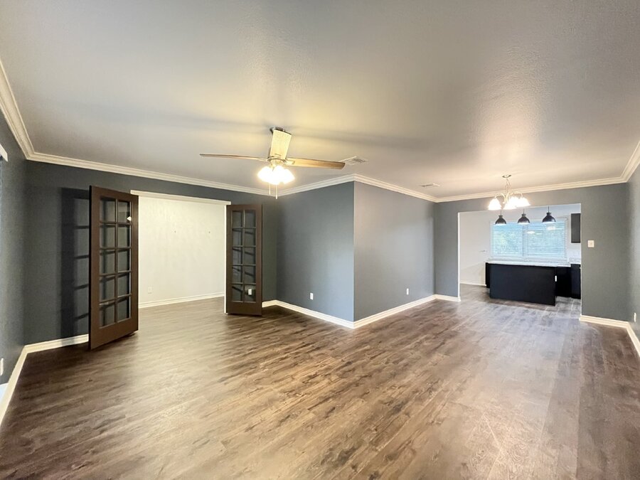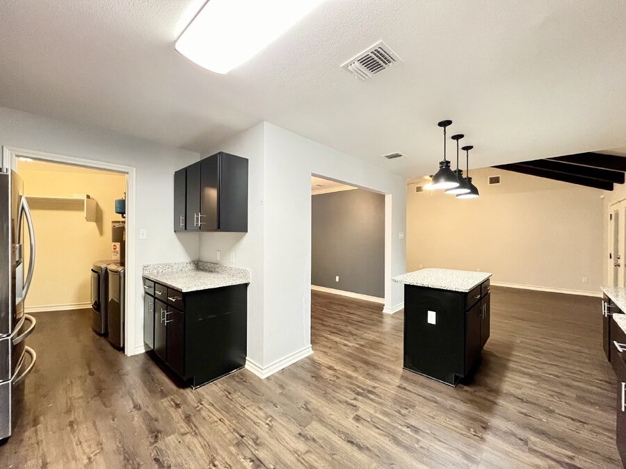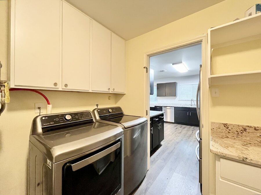 This charming 3-bedroom, 2-bathroom home offers modern amenities and a comfortable living space, perfect for those seeking convenience and style. The spacious kitchen is equipped with solid countertops, an island, a breakfast bar, and a full suite of appliances, including a dishwasher, microwave, electric stove with a glass cooktop, refrigerator, and an ice maker connection. A pantry provides ample storage, and the laundry room features both a washer and dryer.