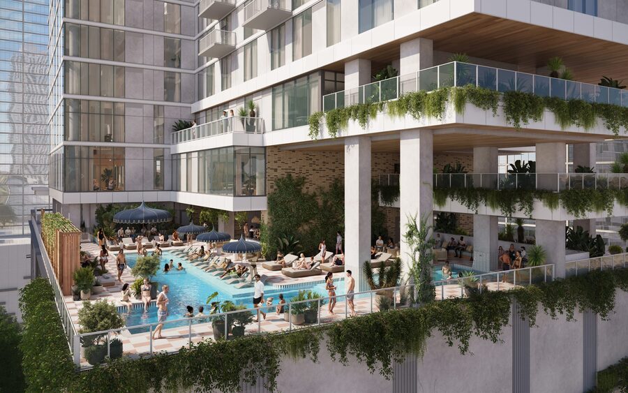 Kick back and relax by the 48th floor rooftop pool, featuring panoramic views of Austin.