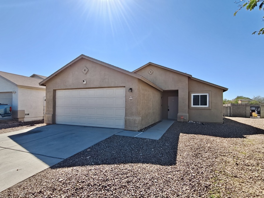 Welcome to this charming 3-bedroom, 2-bathroom home in Tucson, offering comfort and convenience throughout. The spacious and bright living room provides a welcoming space for relaxing or entertaining, while the kitchen makes meal prep easy with generous counter space and ample cabinet storage. The master bedroom features plush carpeting, and two closets. Enjoy easy access to the fenced, low-maintenance backyard from two areas of the home, perfect for outdoor living. Additional features include solar panels, a new AC unit, a 2-car garage and a laundry room with hookups. Don’t miss the chance to see this inviting home today!
