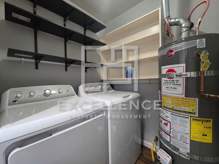 This beautifully updated 2-bedroom, 2-bath duplex offers 900 sq. ft. of comfortable living space with modern finishes throughout. The kitchen features granite counters, an island with storage, a gas stove, stainless steel appliances, a built-in microwave, a top/bottom refrigerator, and a dishwasher. The dining area opens to the living room, which also includes convenient counter seating to the kitchen.