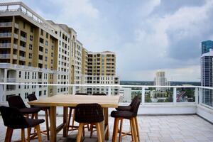 Rooftop residents club with exhibition kitchen
