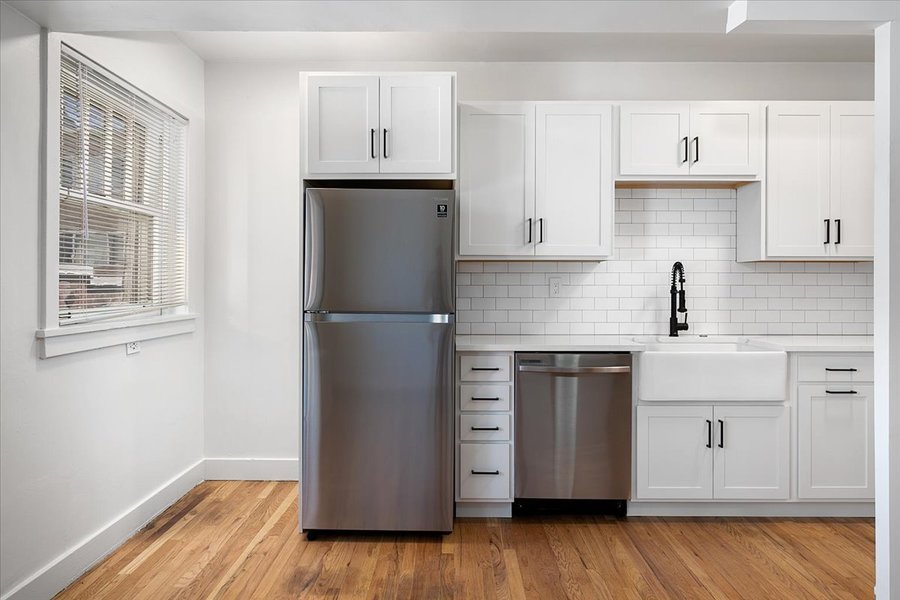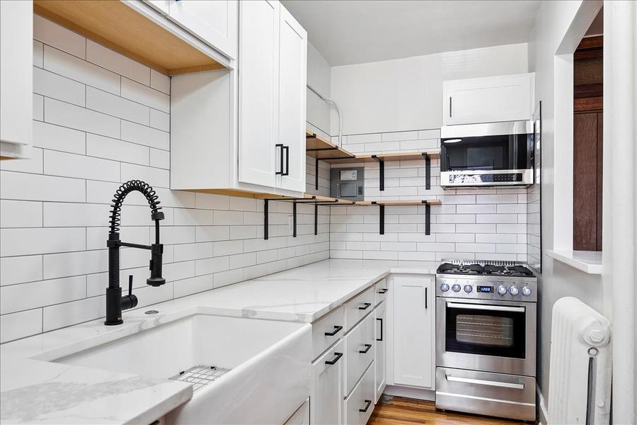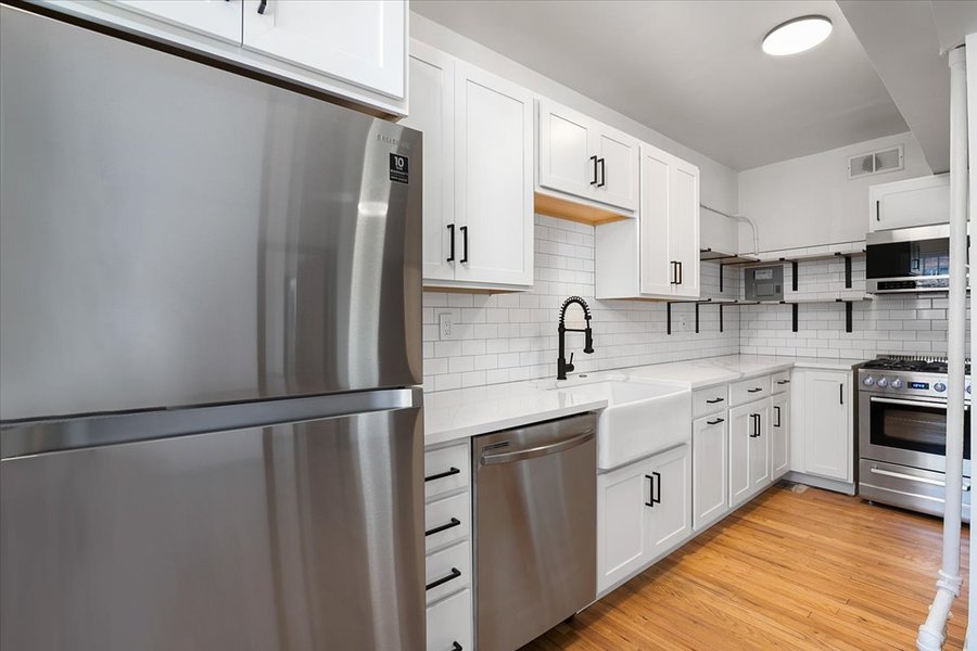 Brand new kitchens and renovated baths! Top-of-the-line soft-close cabinets, quartz counters, farmhouse sinks, and new tile. Original hardwood floors refinished. Dishwasher!