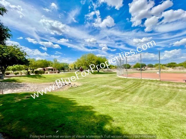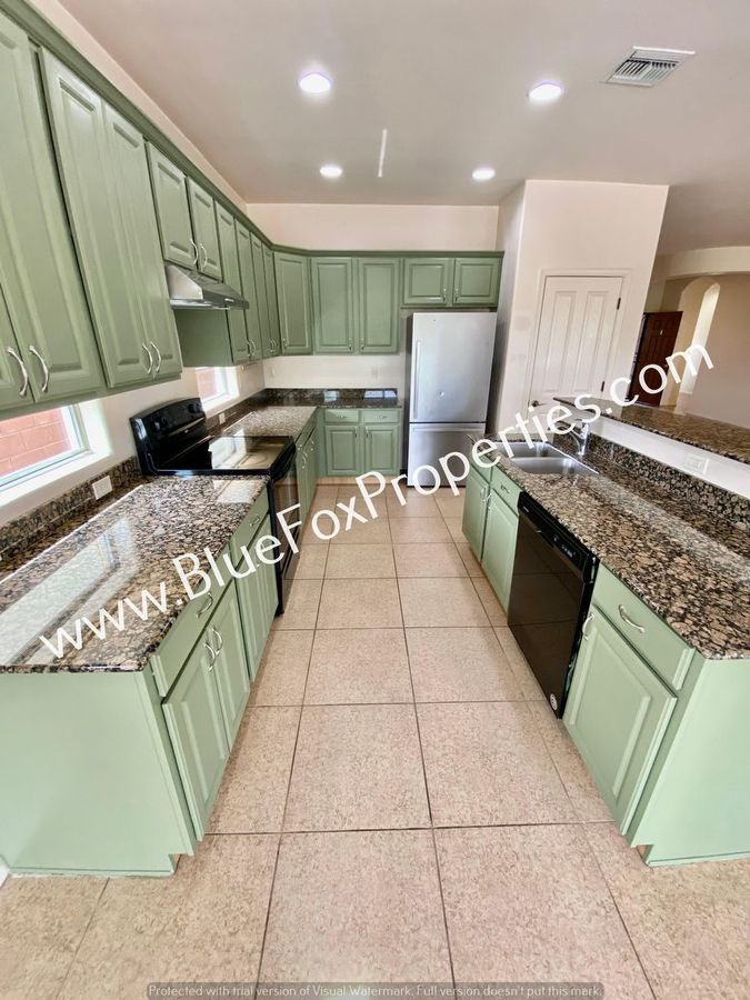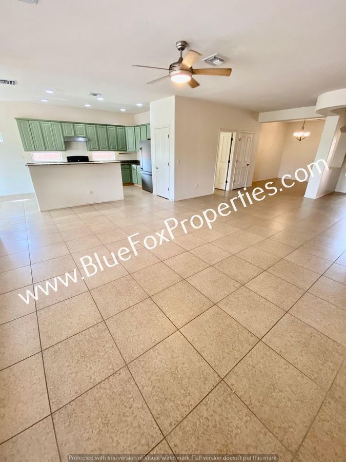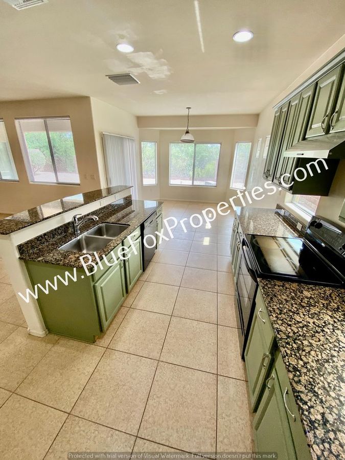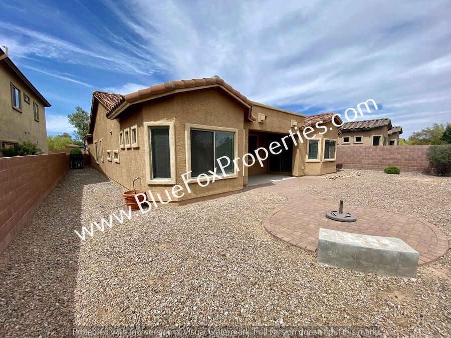 This gorgeous four bedrooms, two bathrooms, and bonus room home feature a split-bedroom plan with a great room, formal dining area, and a kitchen eating area. Enjoy cooking in a large open kitchen with a granite breakfast bar and pantry. Spacious laundry room comes with washer and dryer hookups only. 5-piece master bath. Home backs up to a green belt with views of the Santa Rita Mountains and the neighborhood features sidewalks, parks, and sports courts. This is a must-see!