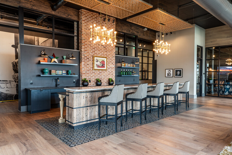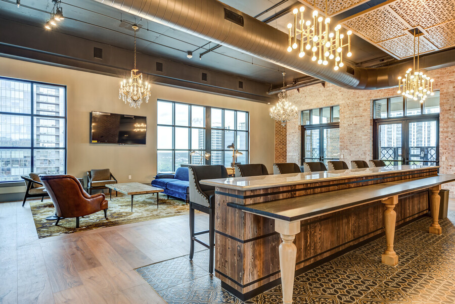 Rooftop lounge with indoor-outdoor bar and social areas