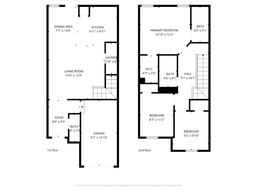 All bedrooms are located upstairs, including a generous primary suite featuring a walk-in closet and private bath with a tub/shower combo and single vanity. Downstairs, you'll also find a laundry room with washer/dryer hookups for added convenience.