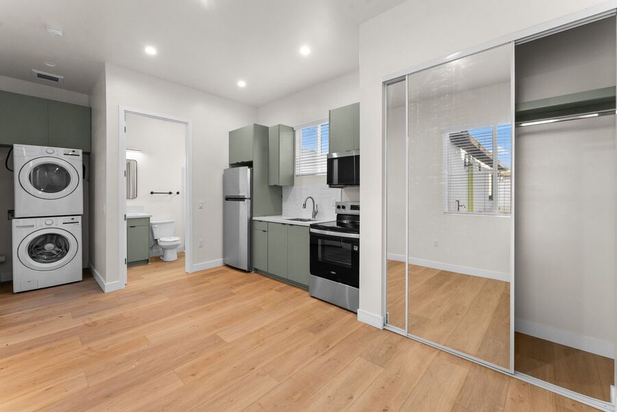 Newly constructed studio apartment available NOW in Golden Hill! This one-bedroom, one-bathroom apartment offers a perfect blend of comfort and convenience. The unit is equipped with brand new appliances and finishes, including in-unit washer and dryer, throughout. The apartment is also conveniently located close to downtown, providing easy access to a variety of dining, shopping, and entertainment options. Experience the vibrant neighborhood of Golden Hill in the OffBroadway building before it's too late!