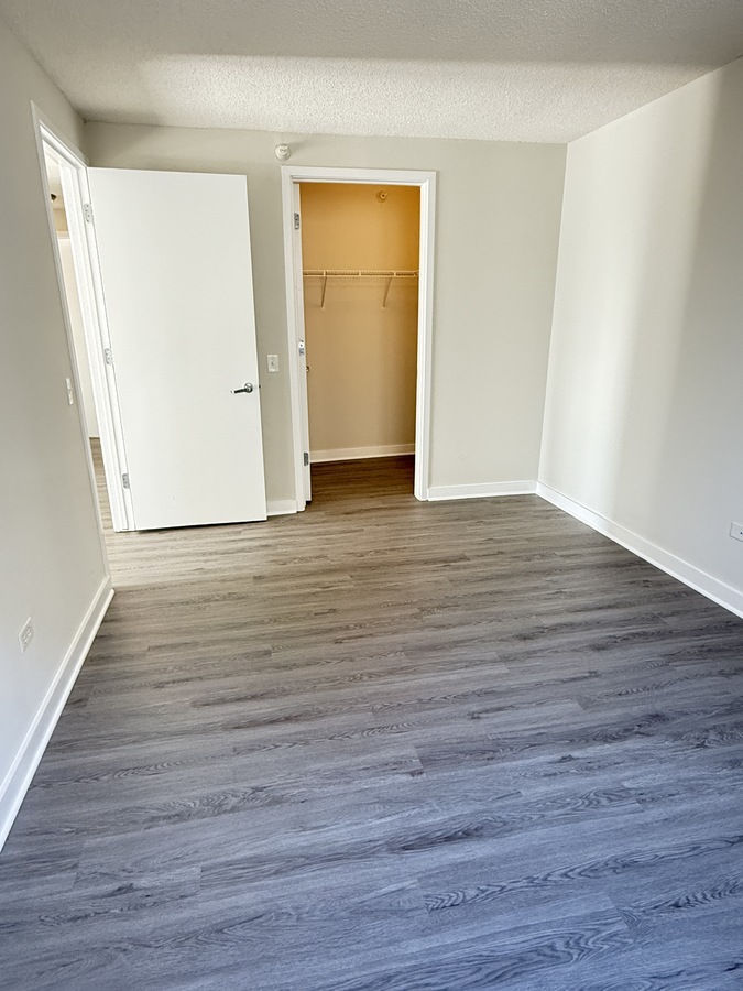 Both bedrooms are generously sized, offering large closets and great privacy for roommates or a dedicated home office setup. The bathroom is modern and well-maintained, with plenty of storage.