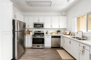 Secured building, equipped with all NEW state of the art appliances including dishwasher, stove, refrigerator, in-unit washer and dryer, beautiful laminate wood flooring. Custom designed cabinets, quartz counters and recessed lighting. Enclosed pet-friendly outdoor yard space.