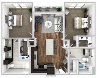 These upscale Austin apartments blend contemporary living with nature, offering a balance of comfort and convenience. Each unit features modern interiors, including gourmet kitchens with quartz countertops, stainless steel appliances, and custom cabinetry. Floor-to-ceiling windows allow natural light to flood the open-concept living areas, and private balconies provide the perfect spot to unwind.