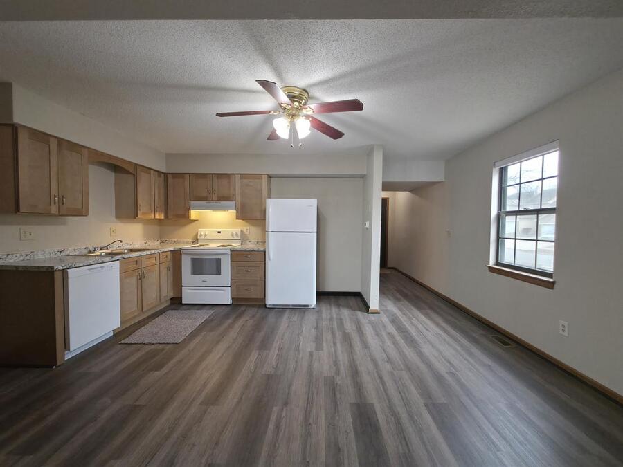 This inviting 3-bedroom, 1.5-bath townhome offers comfortable living with modern updates throughout. Enjoy a spacious living room featuring LVP floors, a cozy wood-burning fireplace, and access to a private balcony. The kitchen and dining area are equipped with plenty of updated cabinets, appliances including refrigerator, stove, and dishwasher, plus a ceiling fan to keep things comfortable.