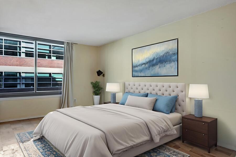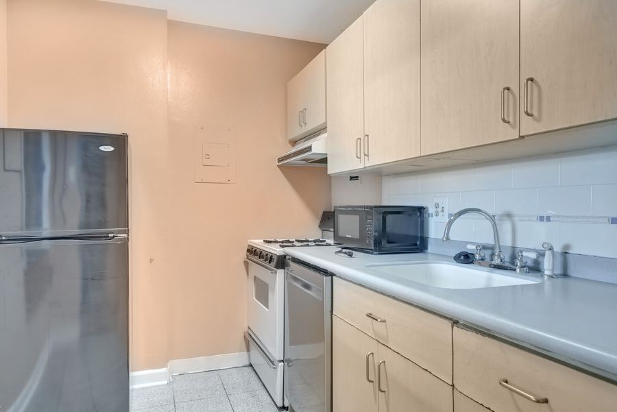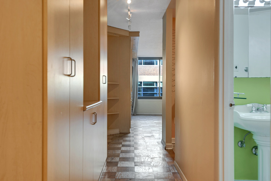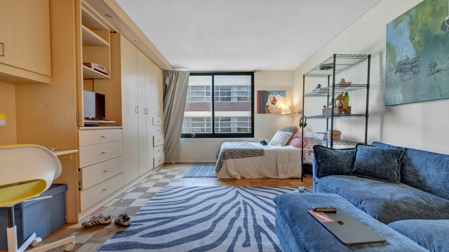 This charming studio apartment on the 8th floor has everything you need and more. At 467 sq ft, the unit offers plenty of storage space and a functional layout. You will love the abundant natural light, beautiful pale hardwood floors, and spacious living area with room for different living, dining, and sleeping arrangements. The galley-style kitchen features a subway tile backsplash, ample cabinet space, brand new dishwasher, and other stainless steel appliances. The home also offers excellent closet storage with custom shelving, and a large full bathroom with a shower/tub combo.