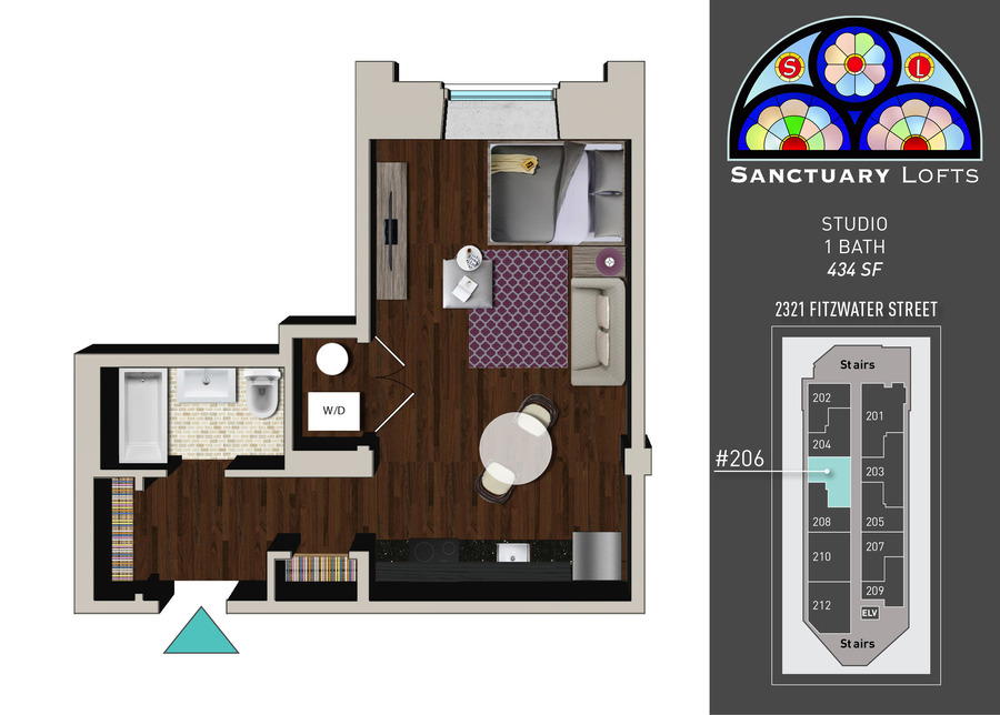 Welcome to Sanctuary Lofts, where modern living meets historic charm! Once a church, these unique apartments feature stunning original stained glass, high ceilings, and stainless steel appliances. Enjoy secure keyless fob entry, elevator access, energy-efficient L.E.D. hallway lighting, and 24-hour access to the trash and recycling room. There are two beautifully restored lobbies, one with original church pews, and indoor & outdoor bike storage. Unit #206 is a lovely Studio on the second-floor. Experience the perfect blend of history and modernity at Sanctuary Lofts!