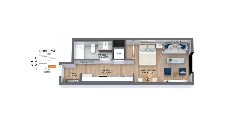 Old Town mid-rise located on the premiere Wells St! This top floor studio apartment features modern stainless steel & quartz kitchen, full size washer and dryer in unit, and 12ft ceilings on the! Spacious kitchen and studio living area offers renters flexible layouts and space for dining or home office space!