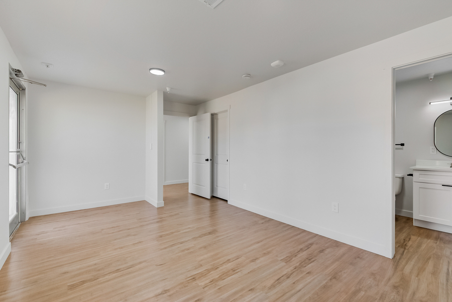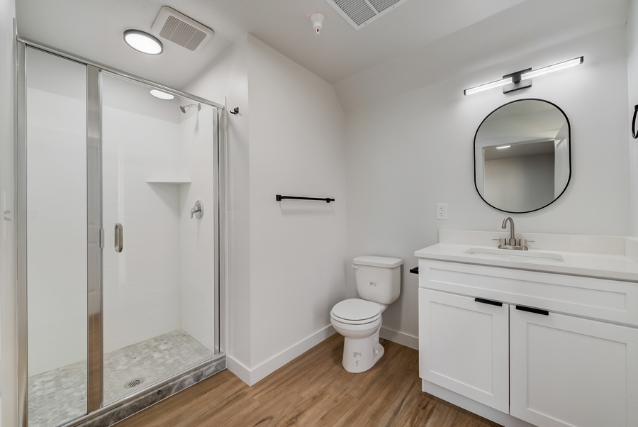 This is a completely renovated shared apartment with a private bedroom and bathroom.