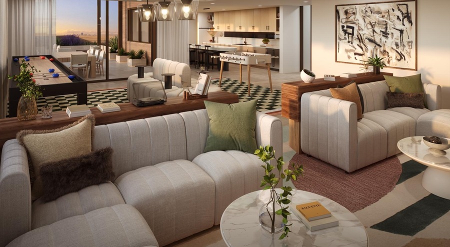 Clubroom w/Gathering Spaces, Fireplace, & Chef Kitchen