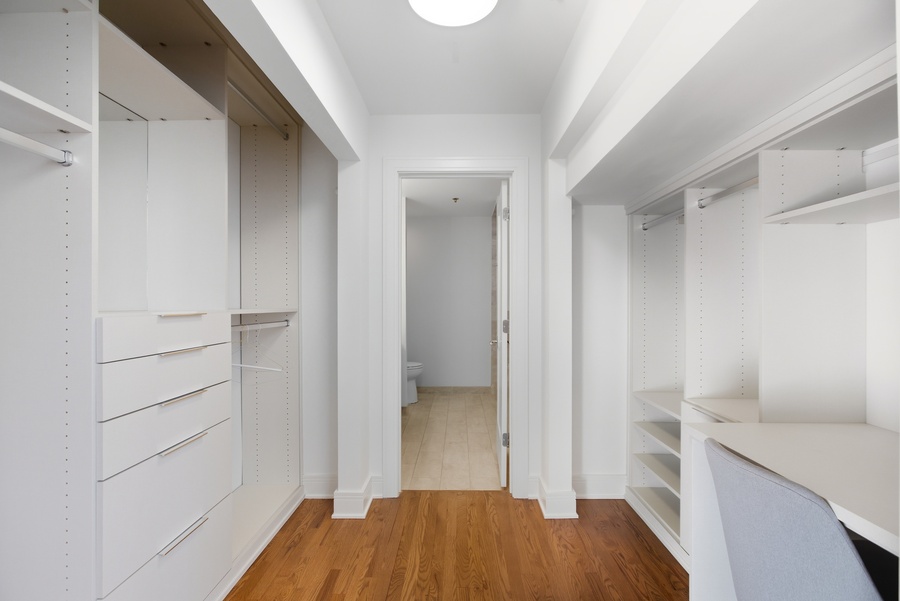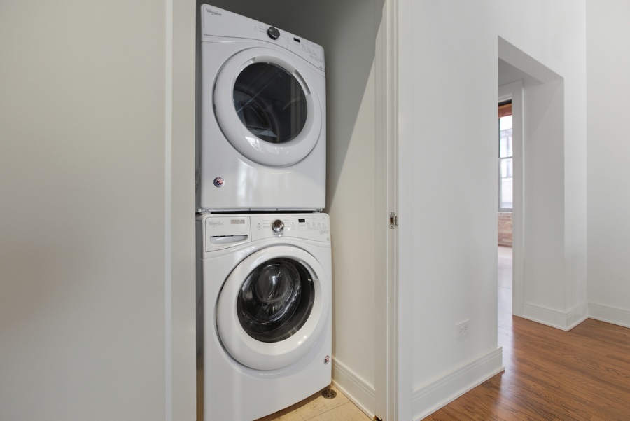 Bright and expansive open floorplan 2 bedroom, 2 full bath timber brick loft in River North with soaring 14 foot ceilings and solid hardwood floors throughout. The stunning kitchen features an oversized eight foot marble island, and stainless steel appliances. Both bedrooms are fully enclosed, including a very spacious primary suite with an organized walk through closet and built in work from home area. The marble primary bath has dual vanity sinks, a separate shower, a soaking tub, and motorized blinds. Additional highlights include In Unit laundry, heated garage parking INCLUDED in the rental price, and extra storage. The building offers 24 hour door staff, a fitness center, and bike room. Jewel Osco, Target, Trader Joe’s, dog parks, and the Chicago and State Red Line stop are all approximately a five minute drive or a fifteen minute walk away.