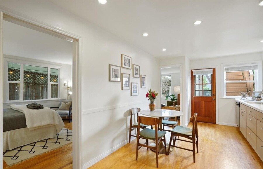 This spacious 712sf, 1-bedroom, 1-bath home has big south facing windows, hardwood floors, good ceiling height, a beautifully updated eat-in kitchen with new s/s appliances, a walk in pantry, and newly updated bath. Additional features include a shared w/ d, a large deeded storage room, direct access to a grilling area and huge shared and fenced backyard. You'll love living here! NOPA has all the conveniences you could ask for, and is just a short distance to trendy, highly rated bars and restaurants, the University of San Francisco, and the iconic Alamo Square and Painted Ladies.