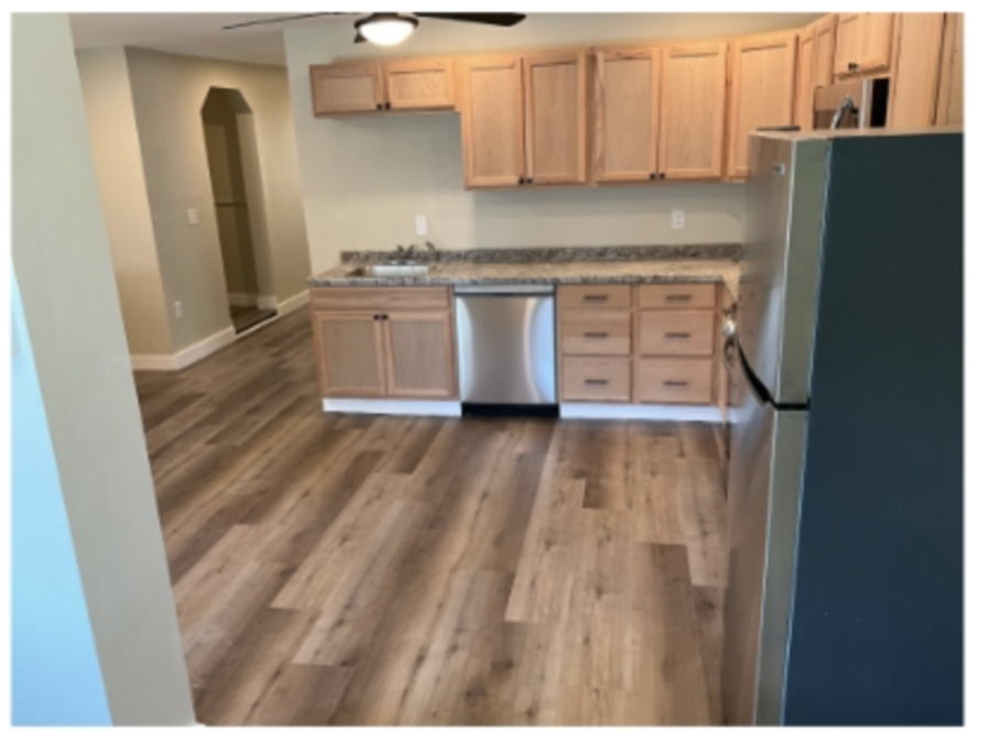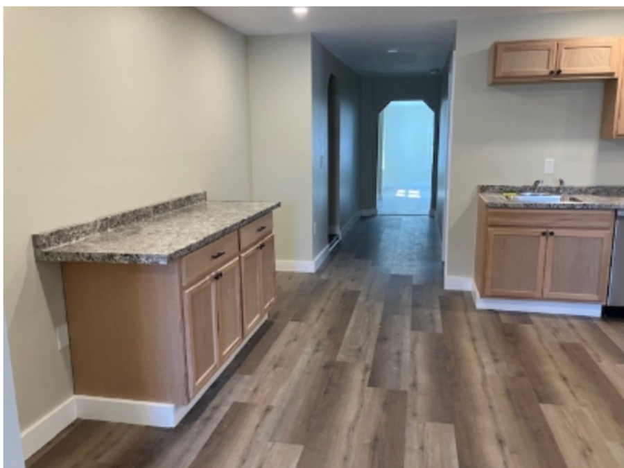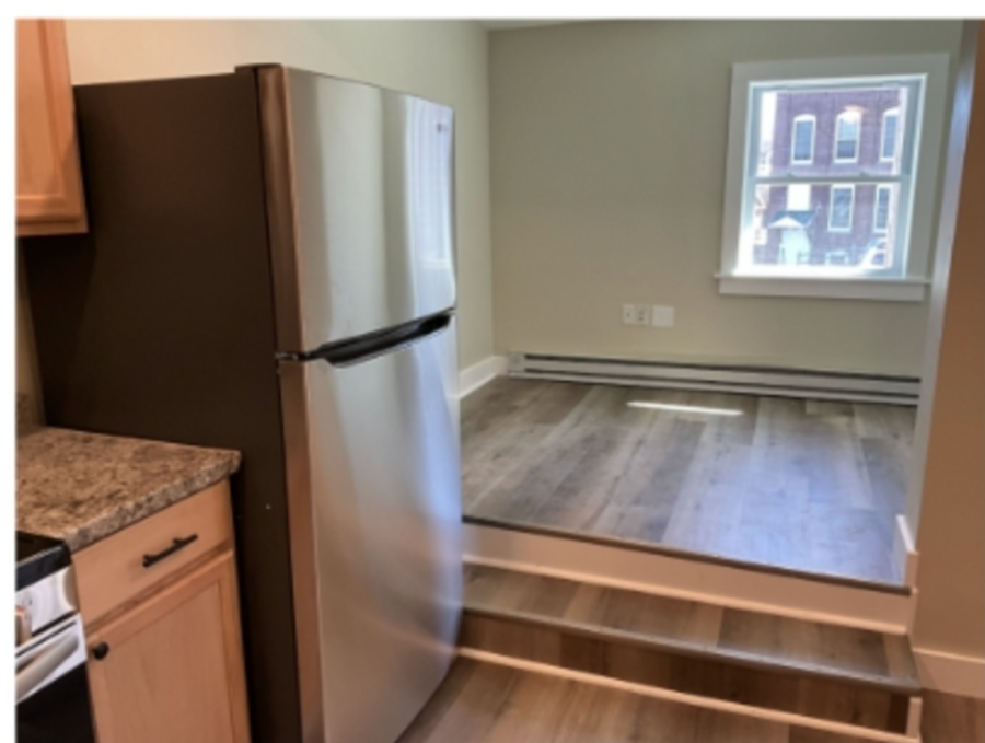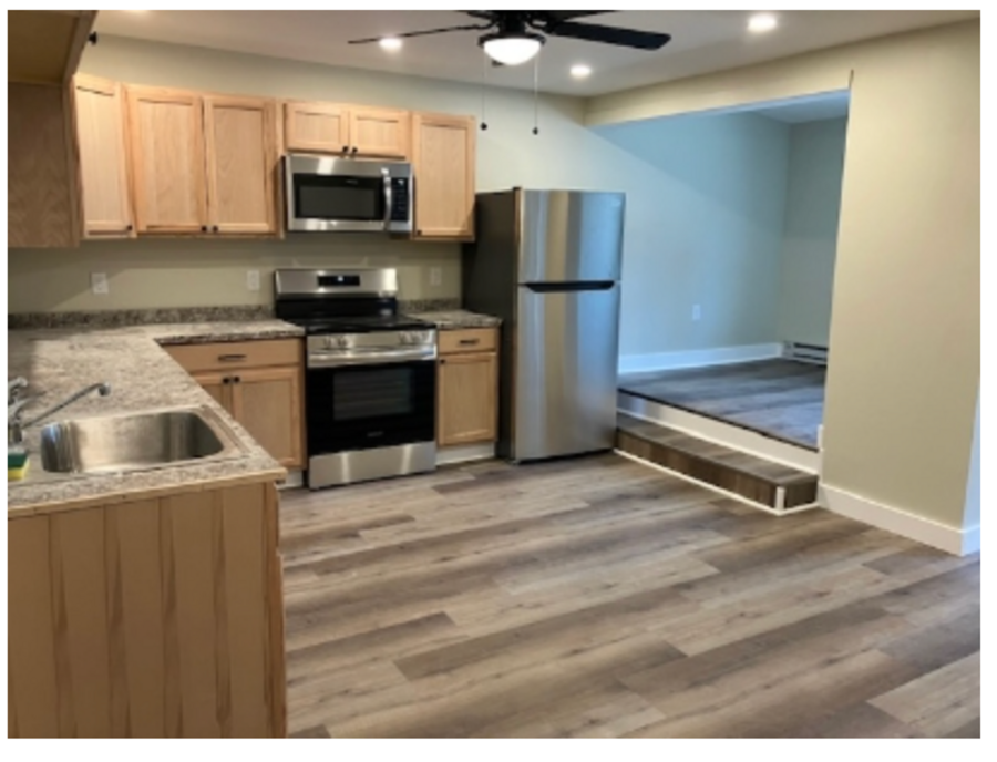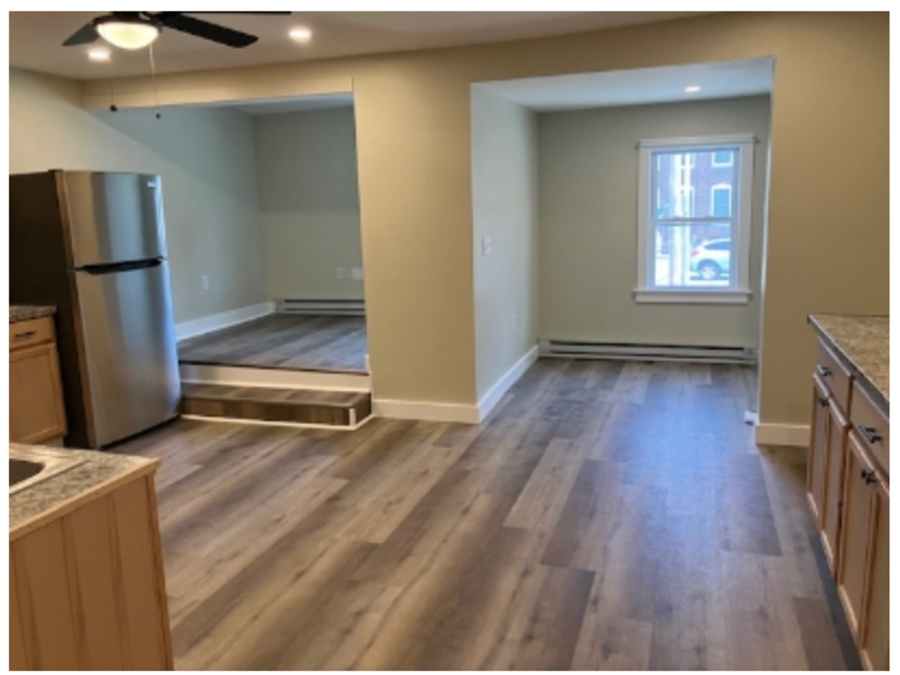 This spacious two-bedroom apartment is located in the heart of downtown Jaffrey. The beautifully designed kitchen features oak cabinets and modern, new appliances including a stove/oven, refrigerator, microwave, and dishwasher. The bathroom has been recently renovated and now offers a new corner shower, a contemporary vanity, and ample storage space.
