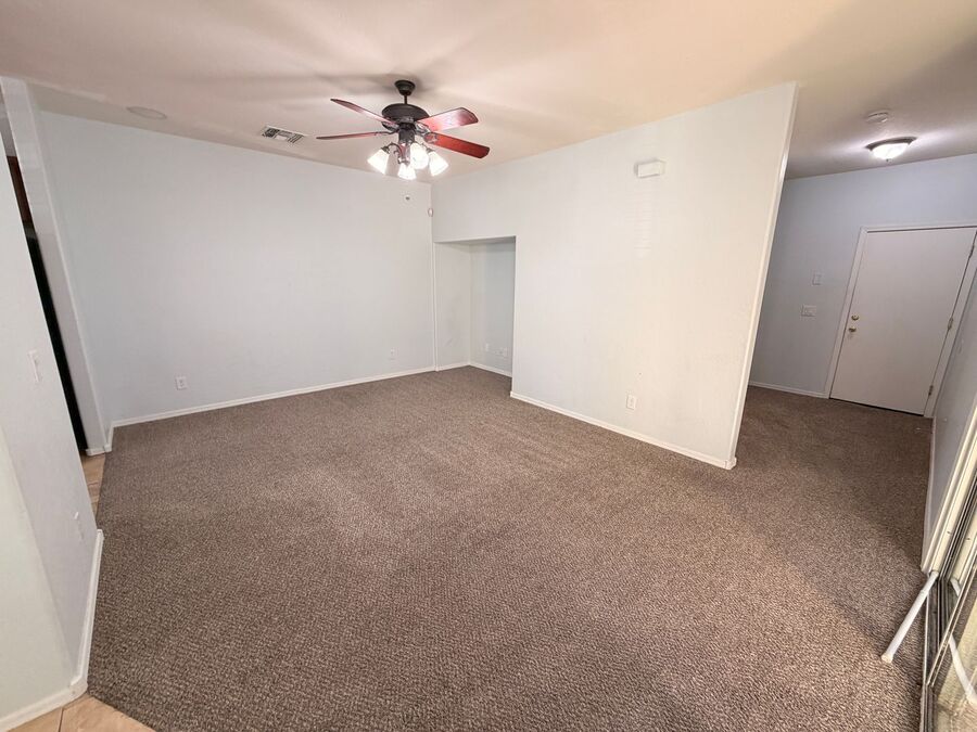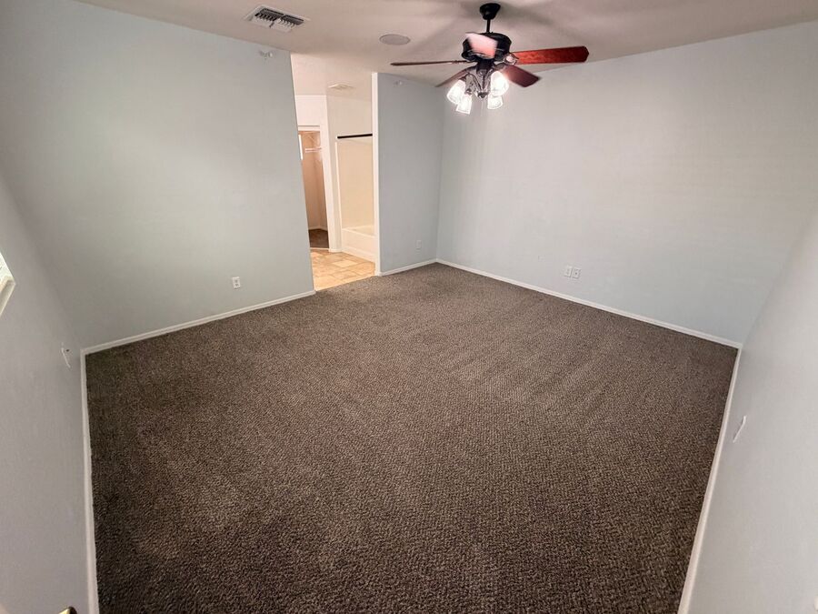 This spacious and stylish two-story home features modern finishes and a comfortable layout throughout. The interior offers grey paint and a large sunny living-dining room combo. The kitchen comes with stainless steel appliances, plenty of cabinet space, and a convenient walk-in pantry. Downstairs 1/2 bath with good sized closet rounds out the 1st floor. Upstairs, the hallway includes built-in desk and cabinets for a computer or crafts. The primary bedroom features a private bath with dual sinks, a separate toilet room, and a generous walk-in closet. Two additional good-sized bedrooms share a well-appointed hall bathroom. The laundry room is located upstairs with washer/dryer included and there is a 2-car garage for convenience. Outside, the home includes an easy-to-maintain side yard, perfect for low-maintenance living. This property blends comfort, functionality, and modern style—ideal for anyone looking for a move-in ready rental. Home is friendly to a max of 2 spayed/neutered pets with a fee of $350 per pet.